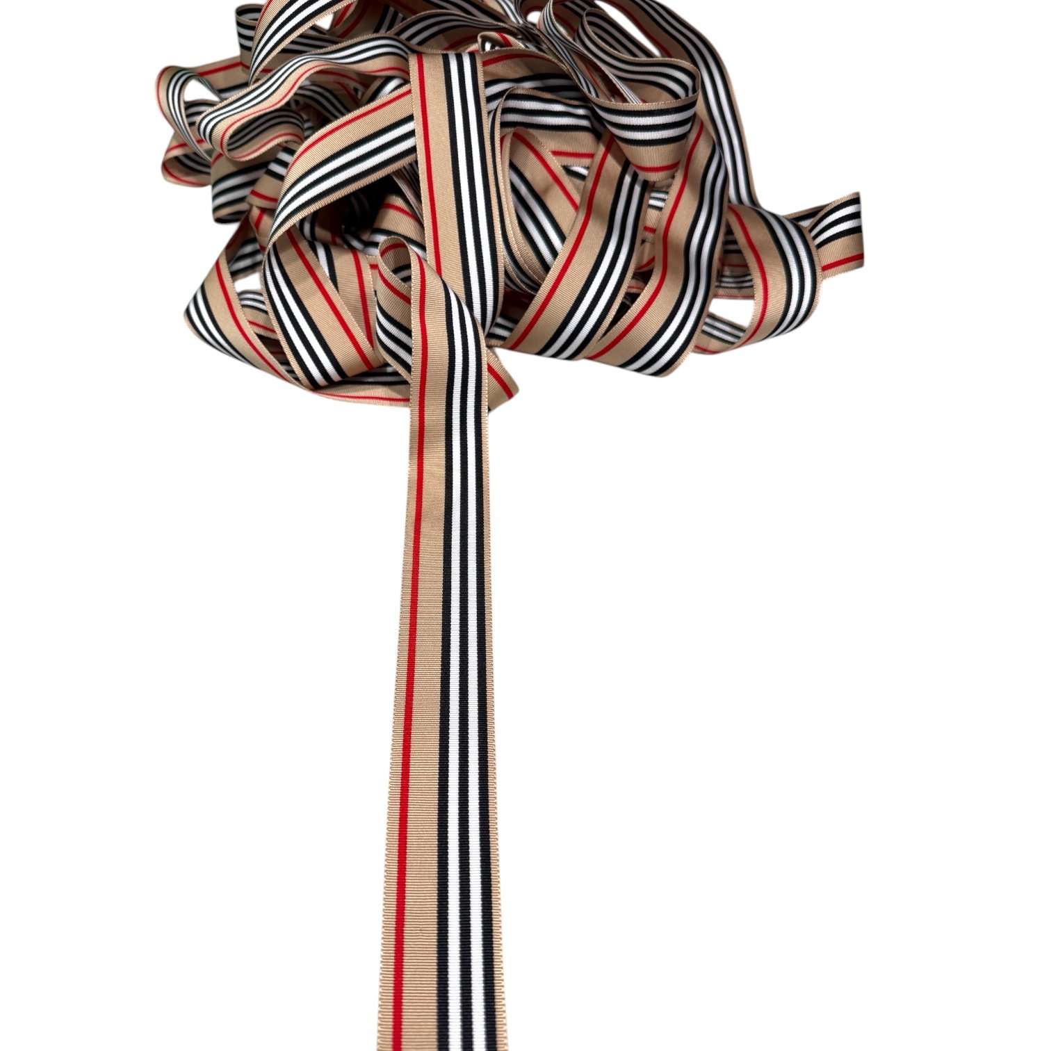 RIBBON-1.5” Designer Stripe Grosgrain Ribbon – Tan / Black / White / Red